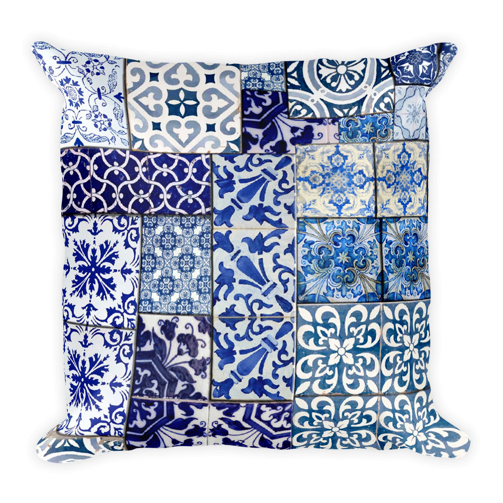 Blue Tiles Square Pillow